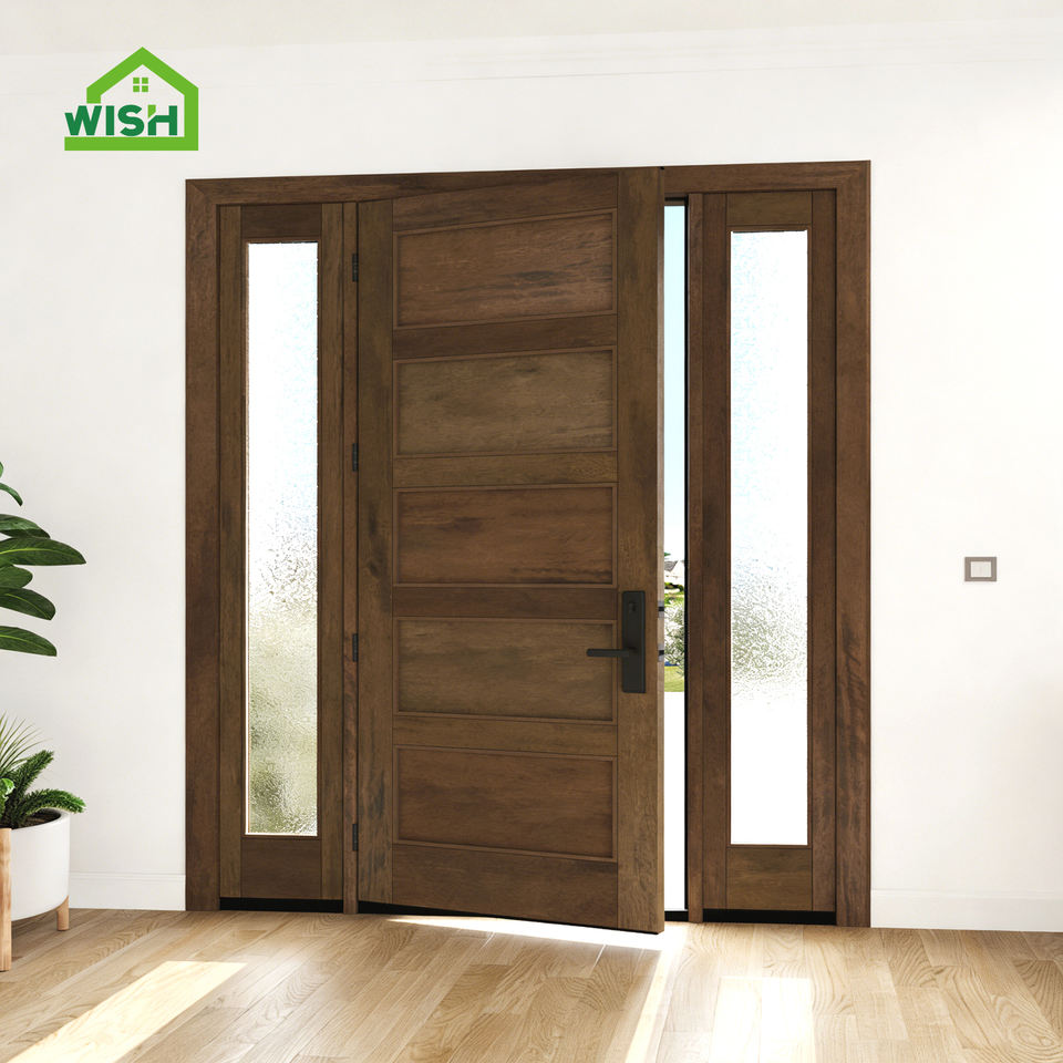 Porte d'entrée moderne en bois, composite hors axe, insonorisée, antivol, avec finition de surface pour villa