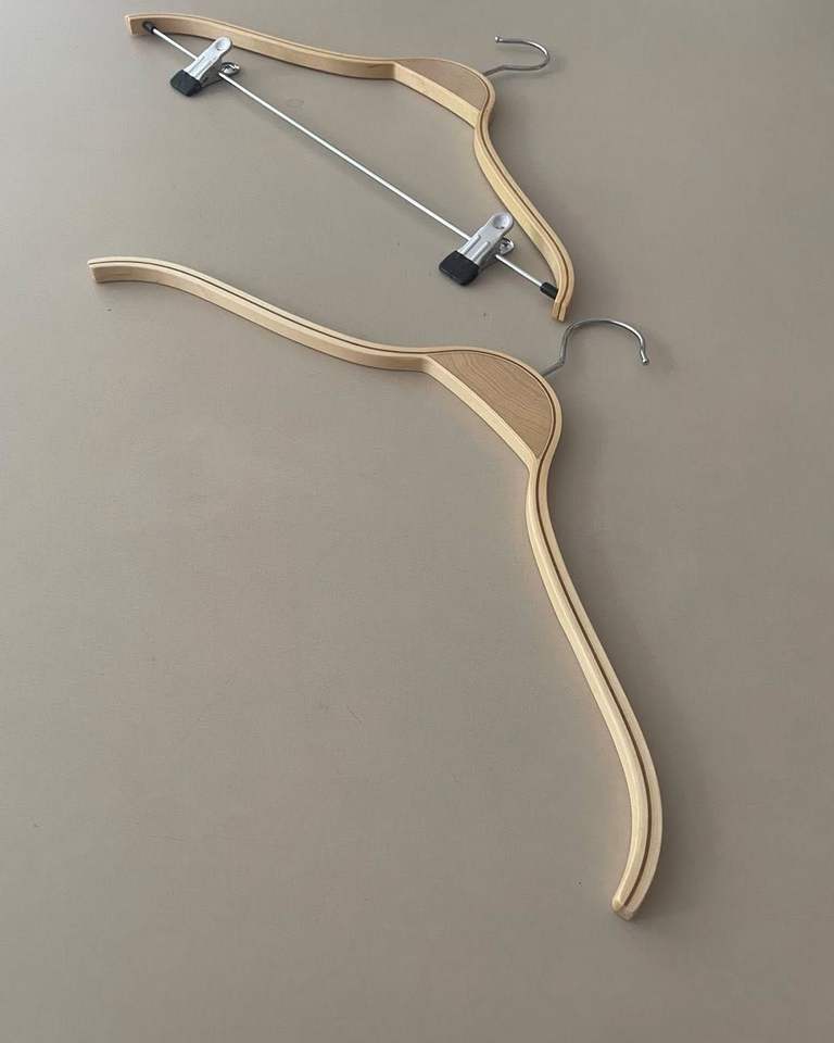 Cintre en bois moderne au design épuré, idéal pour les armoires minimalistes et une organisation optimale des placards