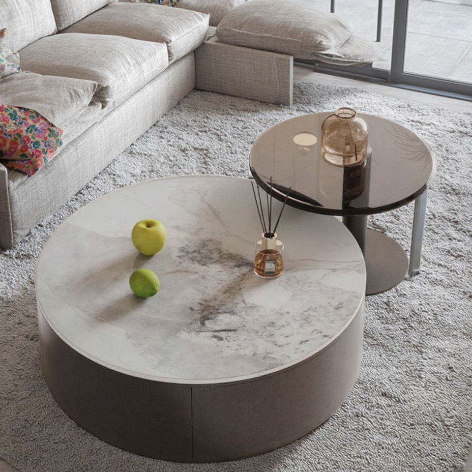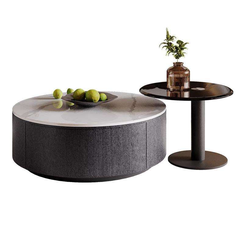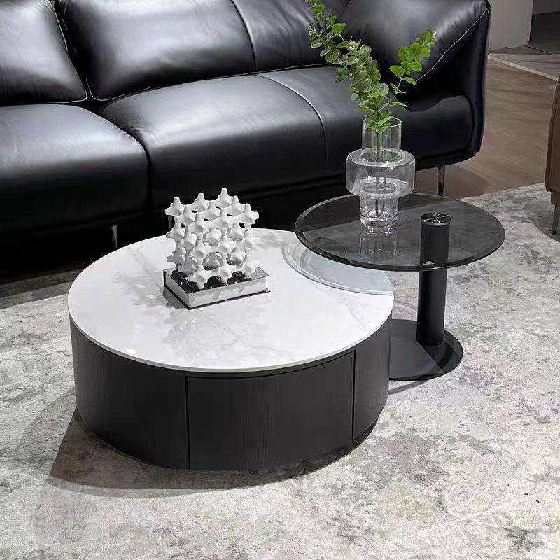 Table d'appoint ronde en bois moderne avec plateau en marbre, ensemble de tables basses pour petits appartements, meubles de salon