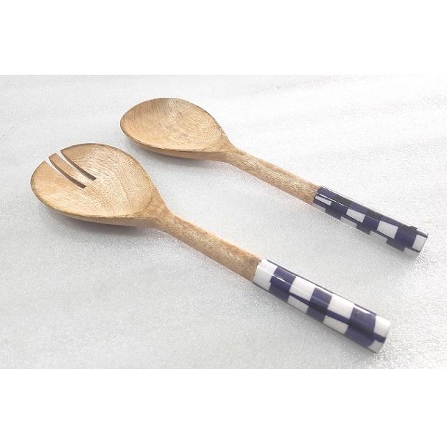 Ensemble de saladiers modernes en bois avec poignée émaillée, cuillères à salade en bois et résine, ustensiles de cuisine pour la table, service manuel de salade