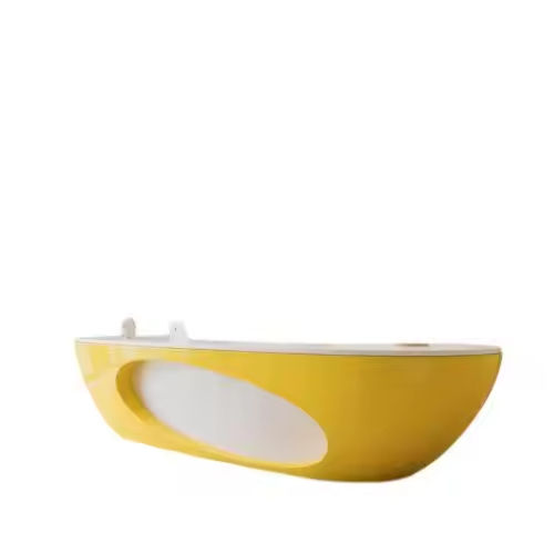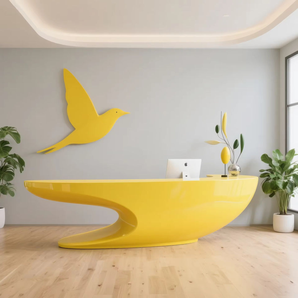 Bureau de réception incurvé extensible jaune moderne avec découpe ovale pour les bureaux, les hôtels et les centres commerciaux