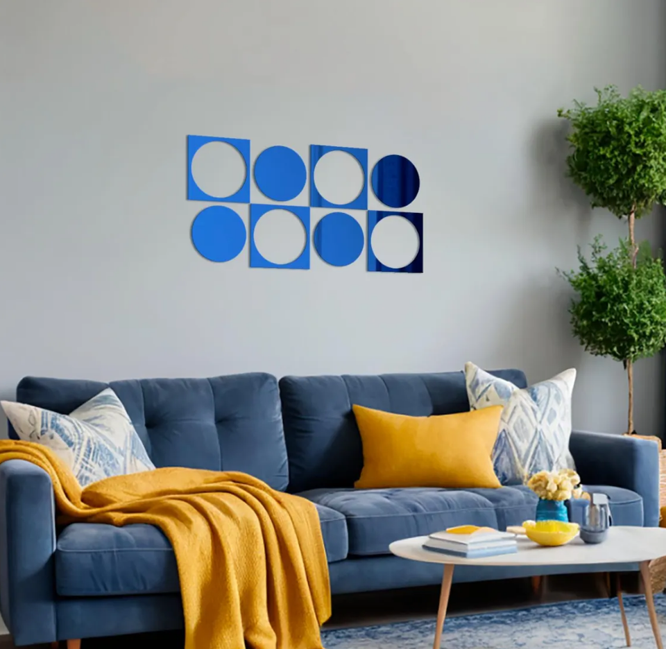 Décoration murale acrylique moderne, miroirs muraux à peler et à coller, décoration acrylique carrée et ronde, miroir mural acrylique décoratif