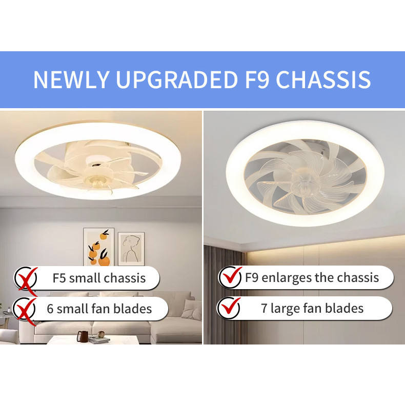 Ventilateur de plafond moderne et simple à 5 pales avec lumière LED, moteur DC et télécommande pour salon et chambre à coucher
