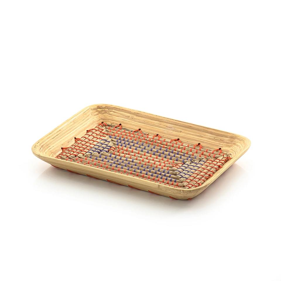 Modern coiled spinning bamboo fiber trays eco friendly rectangular wooden tray for bar decor cheapest price