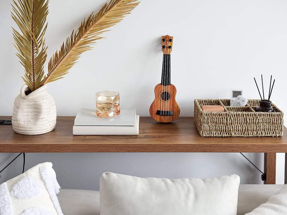 Modern Design Baskets for Organizing with 6 Sections Handwoven Seagrass and Wicker Baskets, Ideal Desk Organizers for Shelves