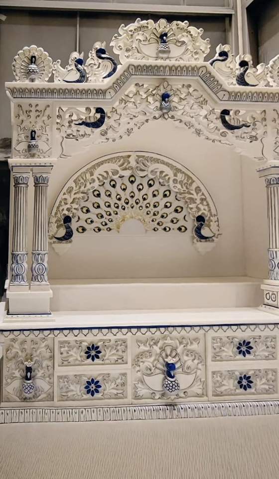 Modern design Makrana White Marble Coriaan Temple Premium Handcrafted Religious Mandir for Home & Office use