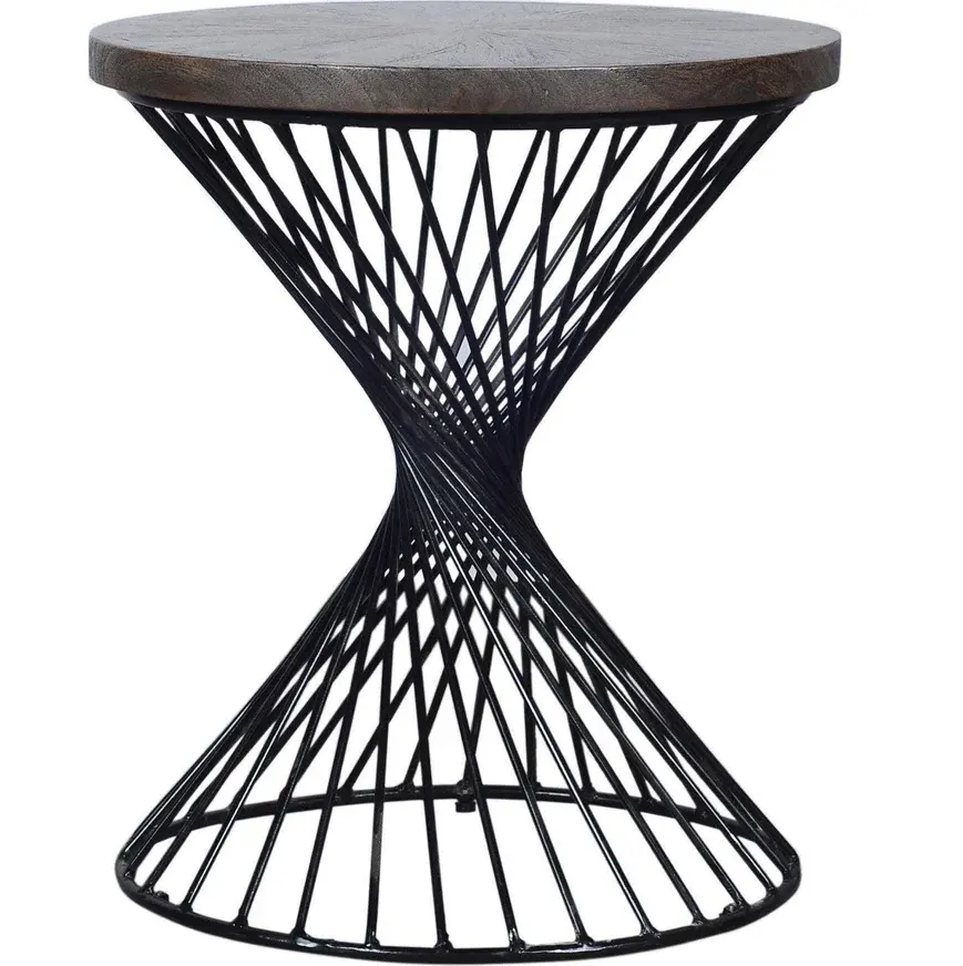 Intérieurs modernes Table d'appoint en bois de Sesham massif design piral Table d'appoint ronde au fini noir