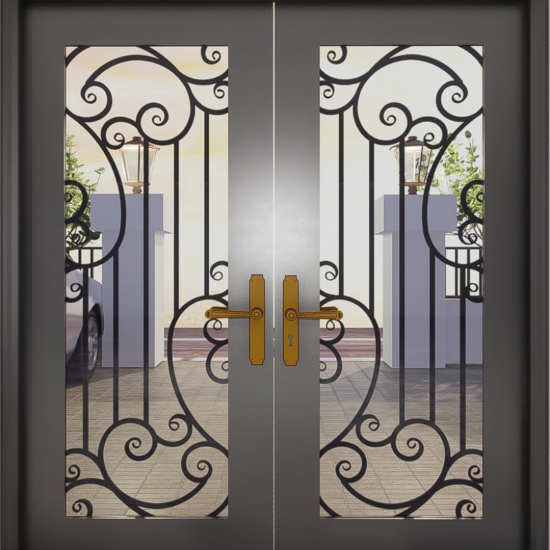 Modern iron entry door with minimalist design and durable powder-coated finish crafted from premium local iron components
