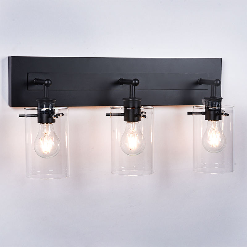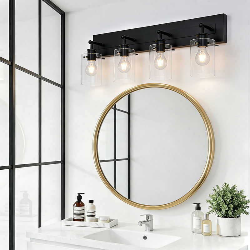 Lampe murale de salle de bain moderne et minimaliste à trois ou quatre têtes en métal et verre transparent, 3500K, garantie de deux ans