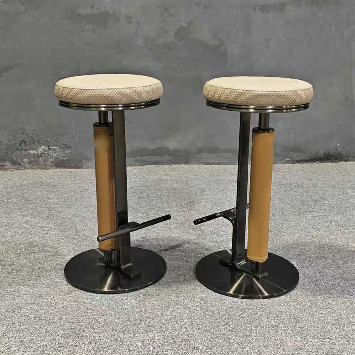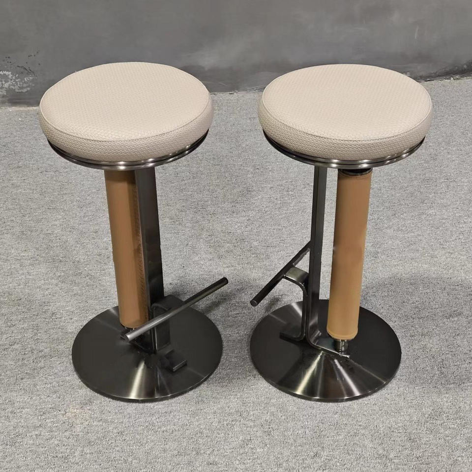 Tabourets de bar ronds modernes sans dos Siège créatif en cuir de haute qualité avec anneau solide en acier inoxydable pour restaurants hôtels HomeBars