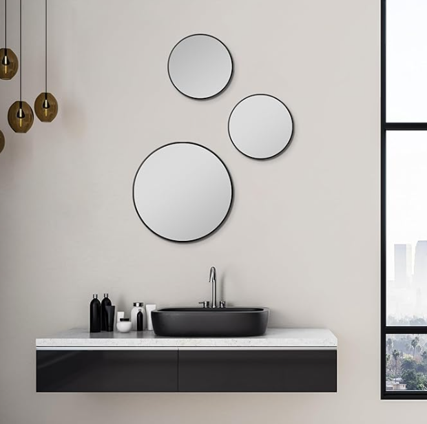 Miroir rond moderne avec cadre en alliage d'aluminium pour lavabo de salle de bain salon ou chambre entrée décoration murale