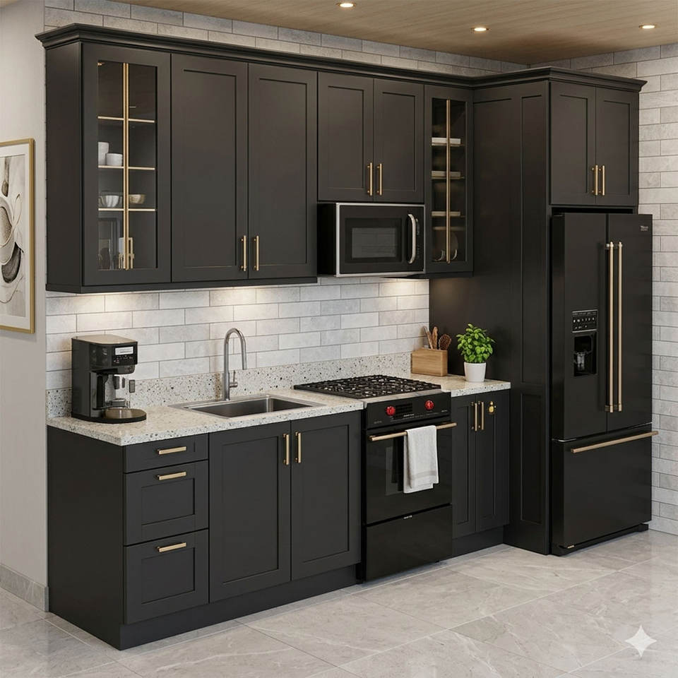 Armoires de cuisine modernes simples en forme de U noir mat comptoir blanc décoration au design personnalisé personnalisation de toute la maison