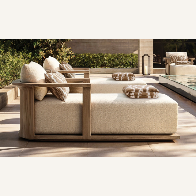 Modern style lounge chair made of teak wood for outdoor use equipped with soft and durable foam