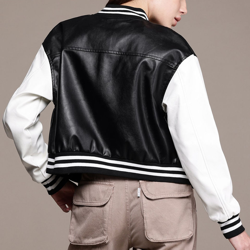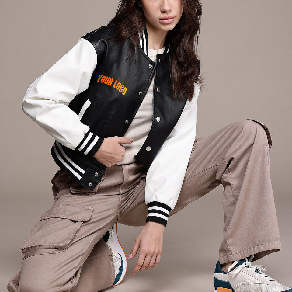 Modern women varsity jacket fleece sleeve stylish wool blend fashionable college outerwear embroidered letterman bomber