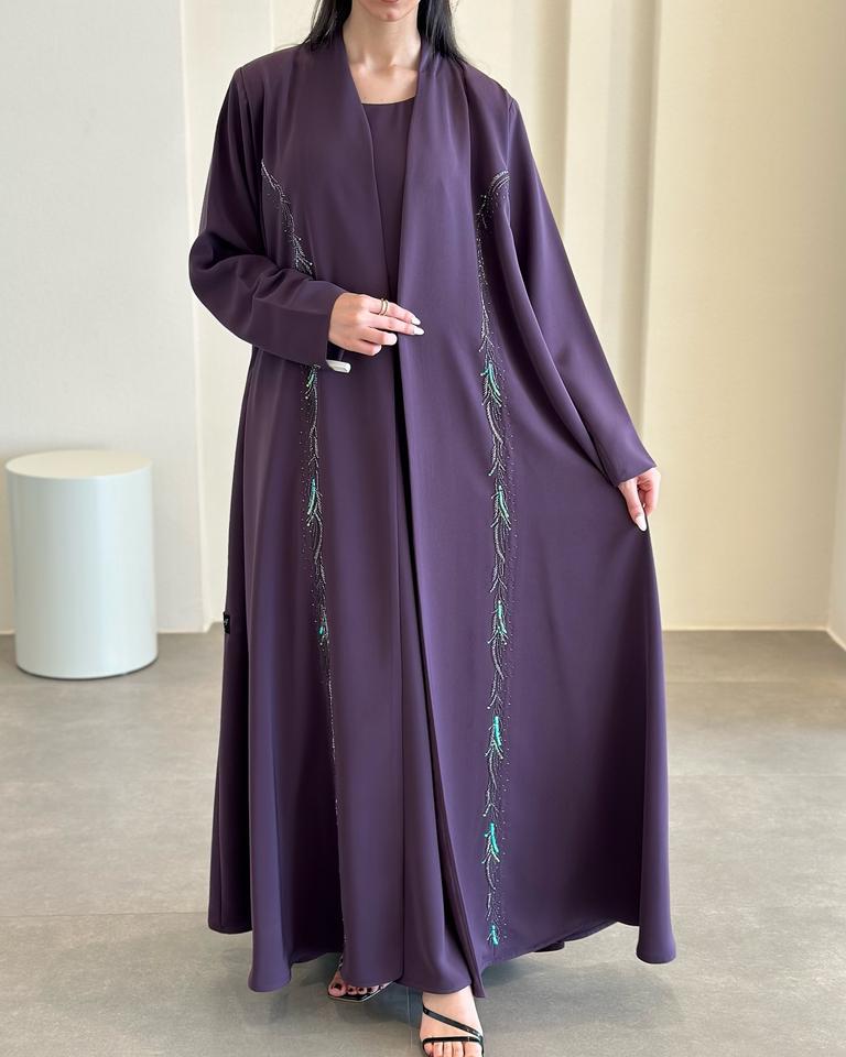 Abaya de Dubaï ouverte brodée élégante pour femme, en soie infroissable, légère, de qualité supérieure, pour tenue formelle ou décontractée, robe islamique longue et stylée