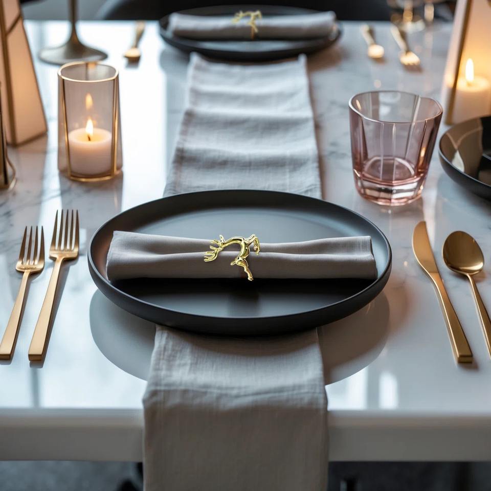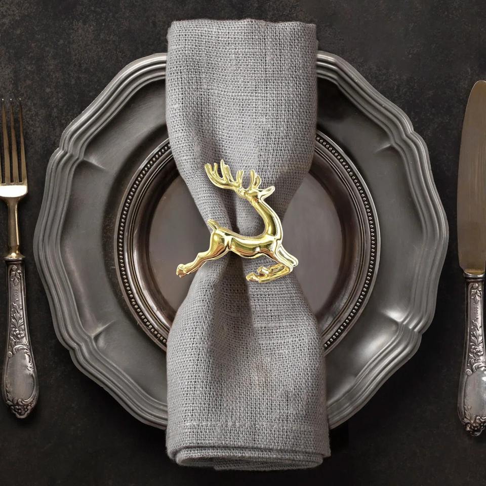 Anneau de serviette en forme de renne en miroir doré modeste, parfait pour la décoration de table de Noël et des fêtes, style festif pour la maison