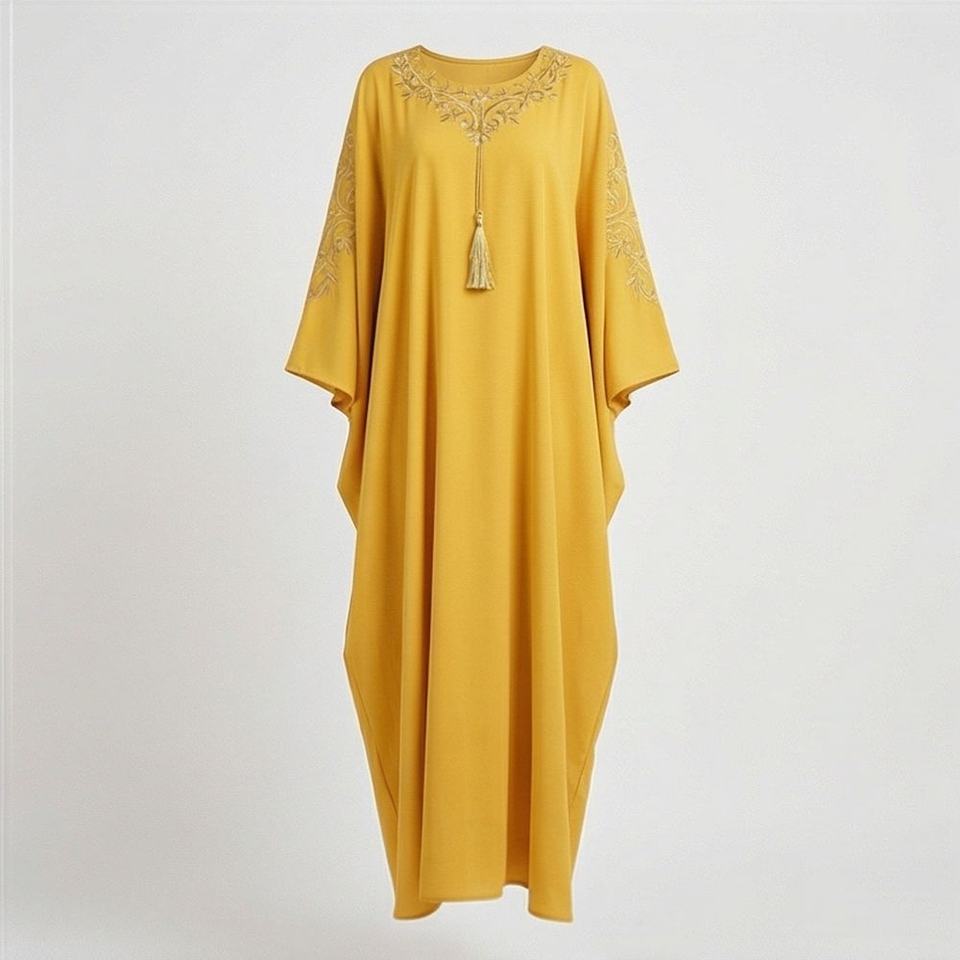 Robe de soirée Kaftan musulmane modeste à manches chauve-souris et broderies à pompons, grande taille, Abaya, vêtements de mode pour l'Aïd