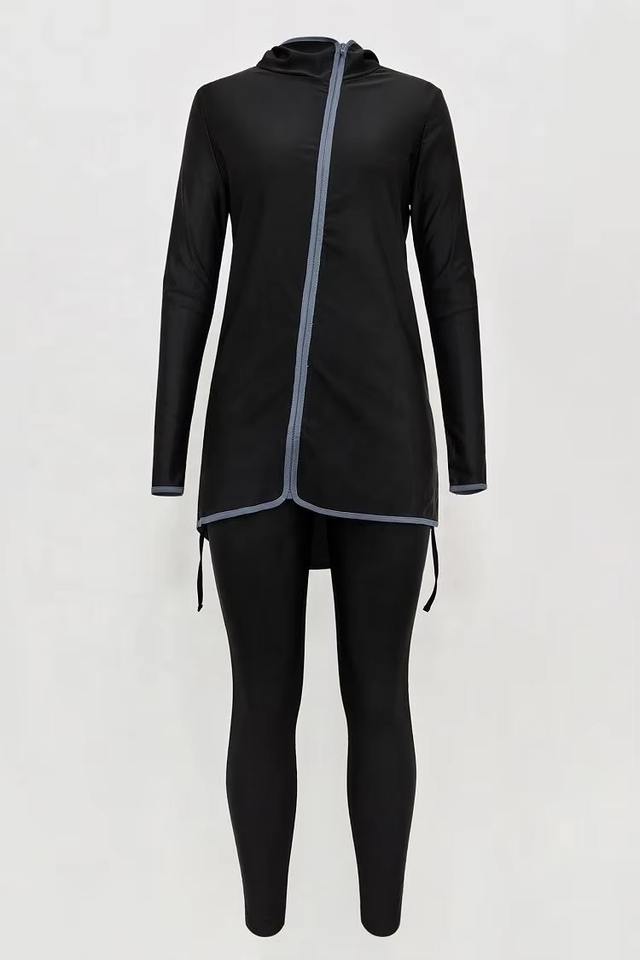 Ensemble de sport modeste grande taille pour femme avec fermeture éclair et poches, tenue de sport musulmane à séchage rapide et protection UPF30