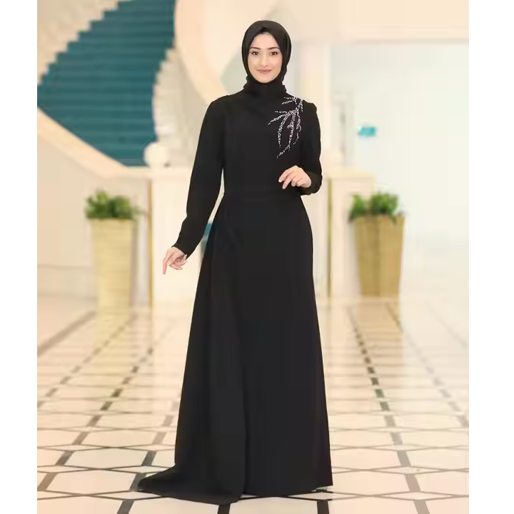 Robe de soirée élégante vintage modeste sans manches col montant silhouette droite longueur au sol en fibre de polyester avec soutien-gorge intégré