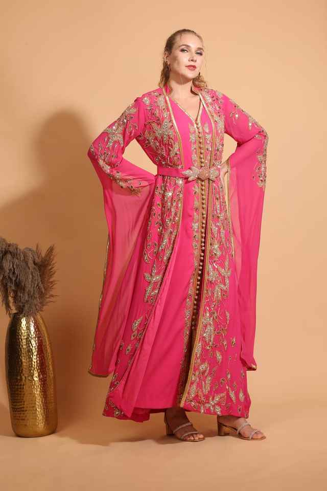 Robe Kaftan Islamique Fantaisie à Perles Fait Main, Style Modeste, Respirante, Antistatique, Fourniture ODM pour Mariages et Fêtes, Technique Brodée