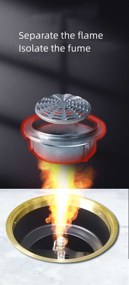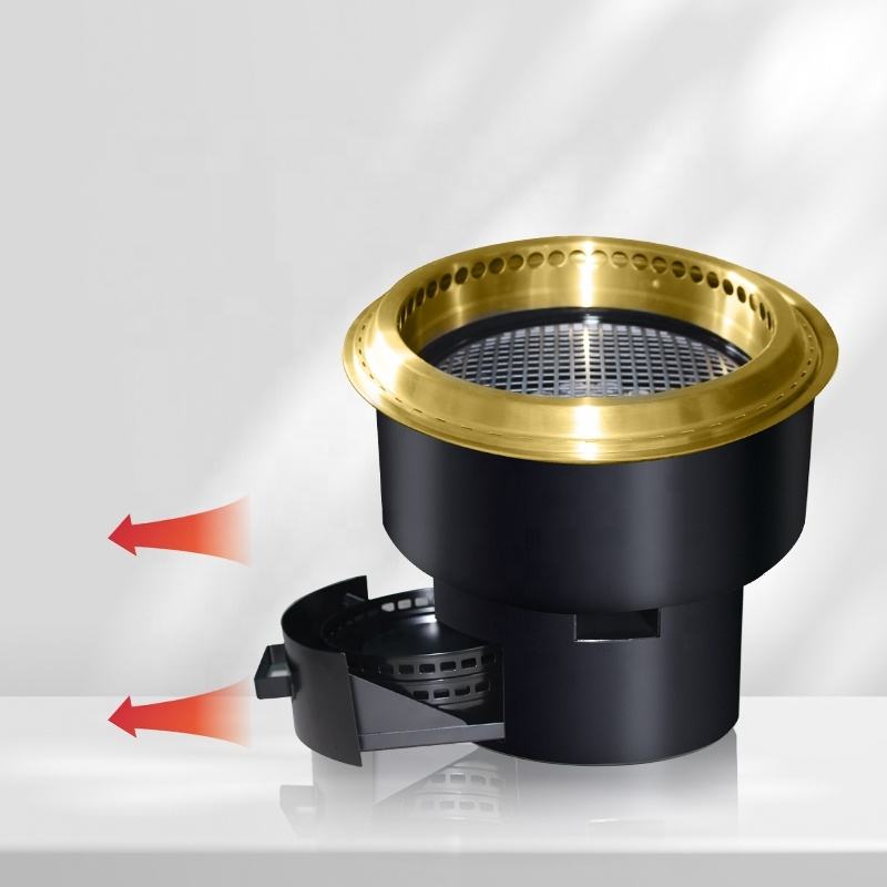 Réchaud à gaz de cuisine commerciale Modi avec barbecue coréen naturel de table pliant doré pour restaurants Brûleur à gaz intégré