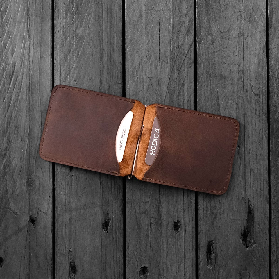 Modica Larga-Portefeuille en cuir véritable avec pince à billets (Premium)