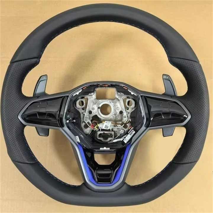 Volant en cuir semi-perforé modifié pour Volkswagen VW Golf 7 Mk7 Golf 8 MK8 8R R GTI GTD Jetta Bouton de klaxon