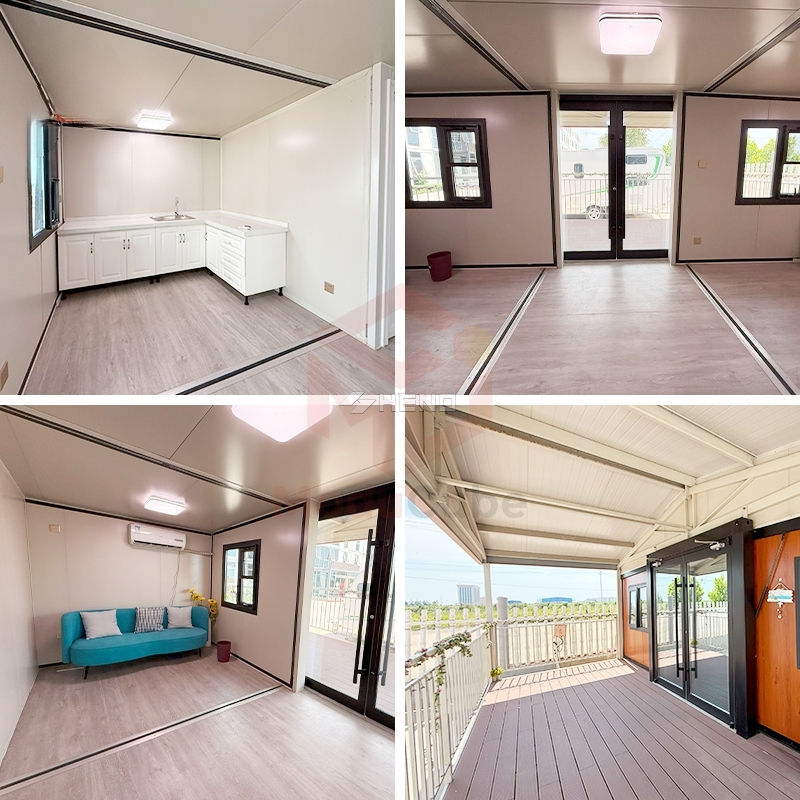 Maison préfabriquée Moducube en bois, conteneur extensible de 20 pieds, maison pliable avec terrasse et toit