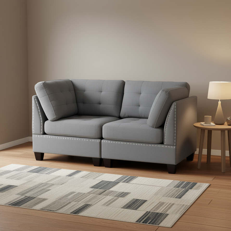Ensemble de salon moderne en tissu, 2 pièces, gris, design contemporain, meubles pour la maison