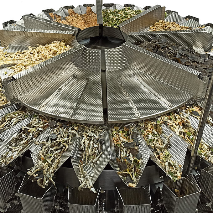 Peseuse modulaire à 32 têtes multi-têtes mélangeant la machine d'emballage de poisson sec pour aliments secs et légumes Machine d'emballage automatique de céréales