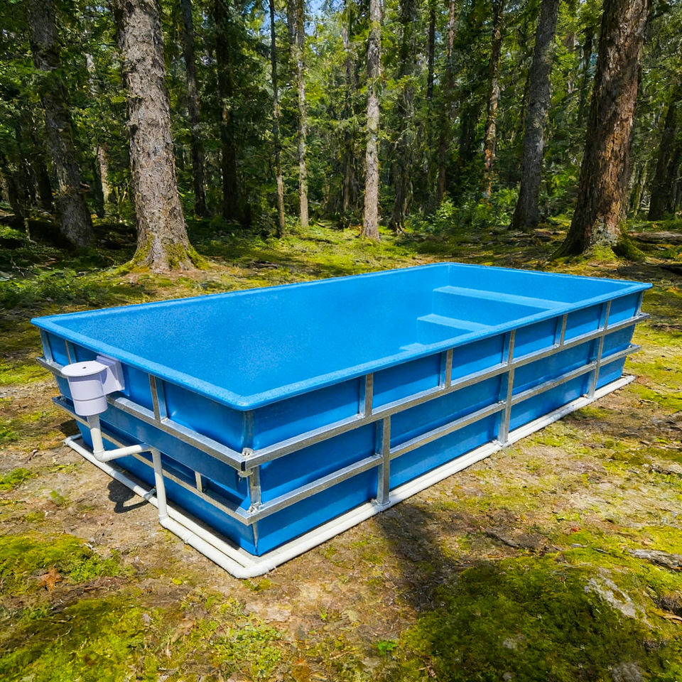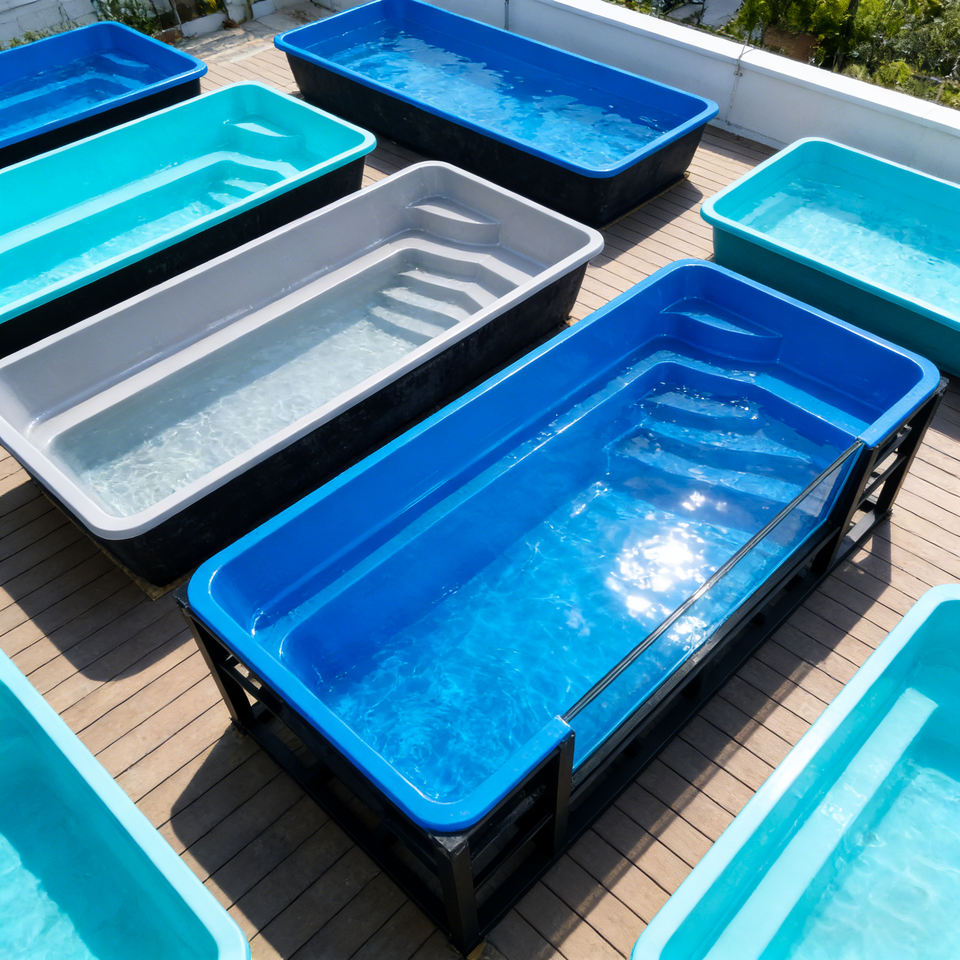 Piscine modulaire en acrylique avec paroi transparente et filtre intégré pour la détente à domicile, structure en métal.