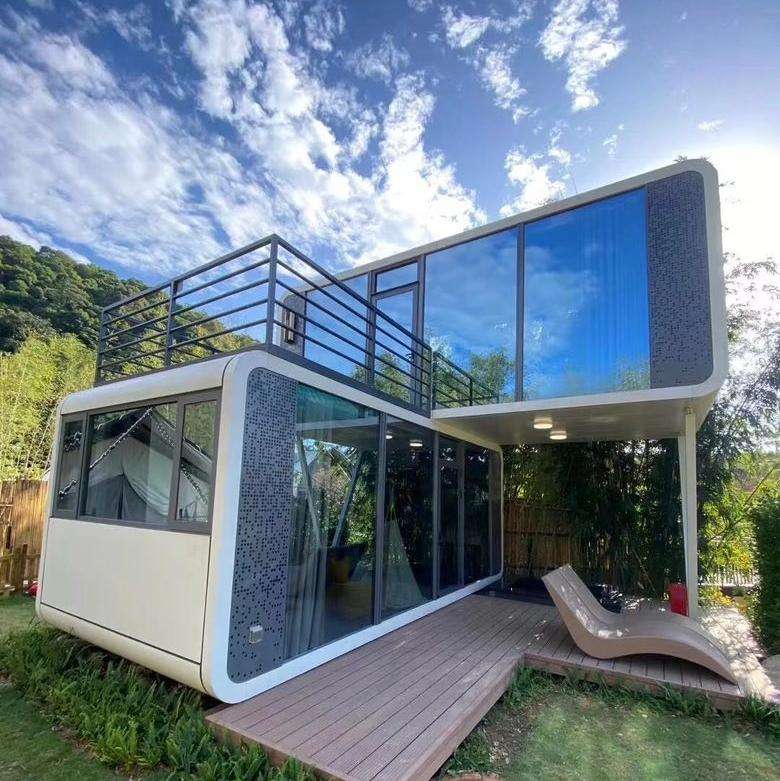 Cabane modulaire Apple à 2 étages, maison préfabriquée, salon, cuisine, chambre à coucher pour hôtel, appartement, bureau