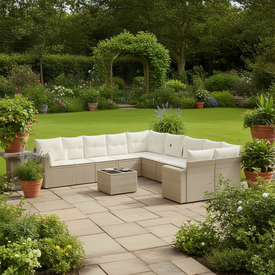 Ensemble de canapés de jardin modulaires en rotin PE beige, mobilier d'extérieur, design contemporain confortable