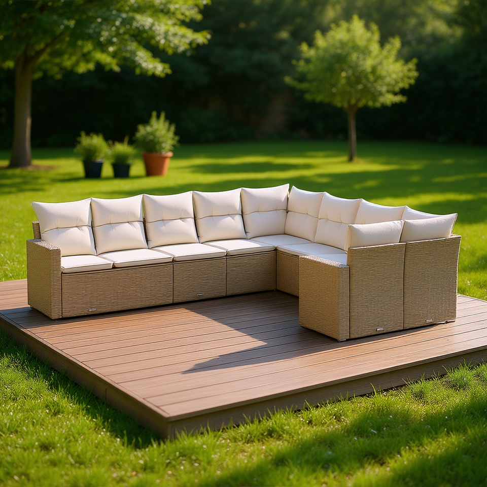 Ensemble de canapés de jardin modulaires en rotin PE beige, mobilier d'extérieur, 10+ places, design contemporain