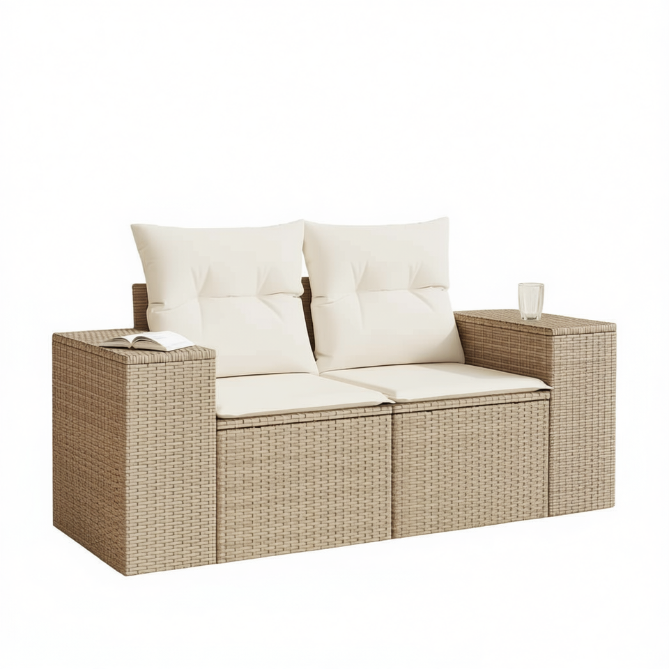 Canapé de jardin modulaire en polyrotin beige, deux places, mobilier d'extérieur, design contemporain confortable
