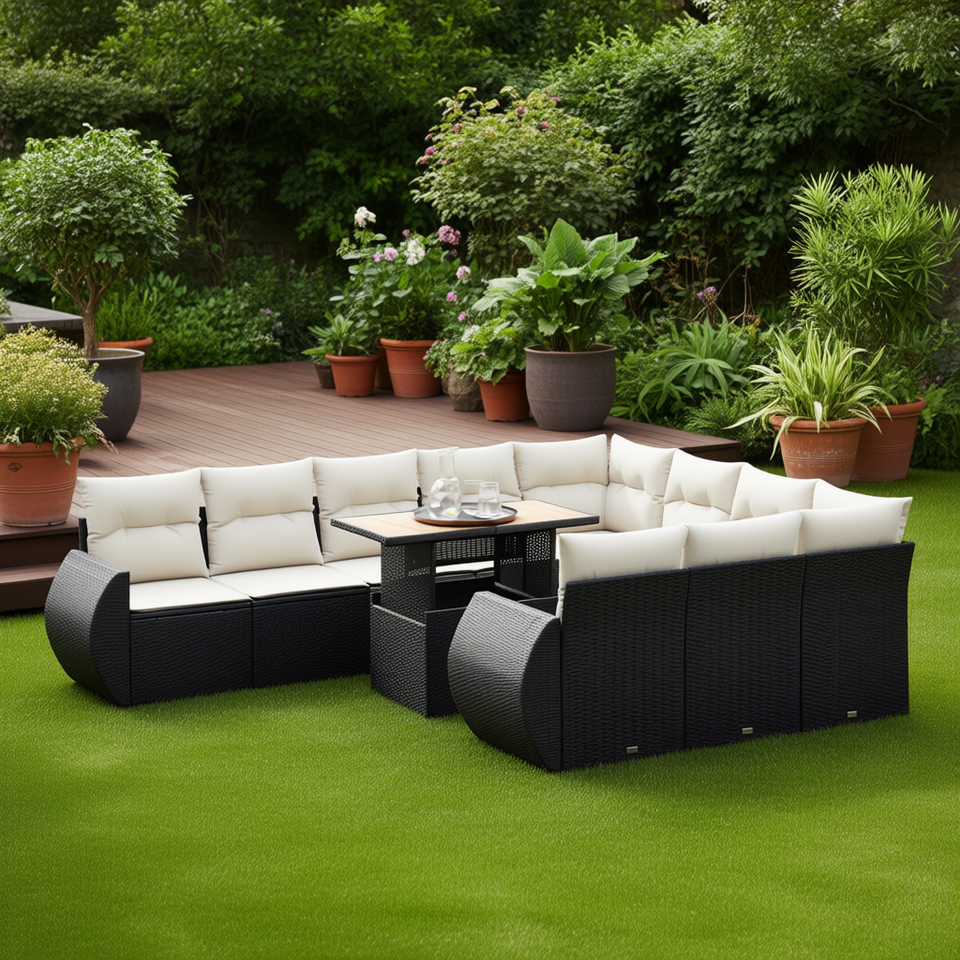Ensemble de canapés de jardin modulaires en rotin PE noir, collection de meubles d'extérieur élégante