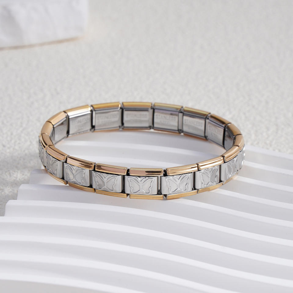 Bracelet modulaire en acier inoxydable, design géométrique papillon, accessoire de bijouterie unisexe