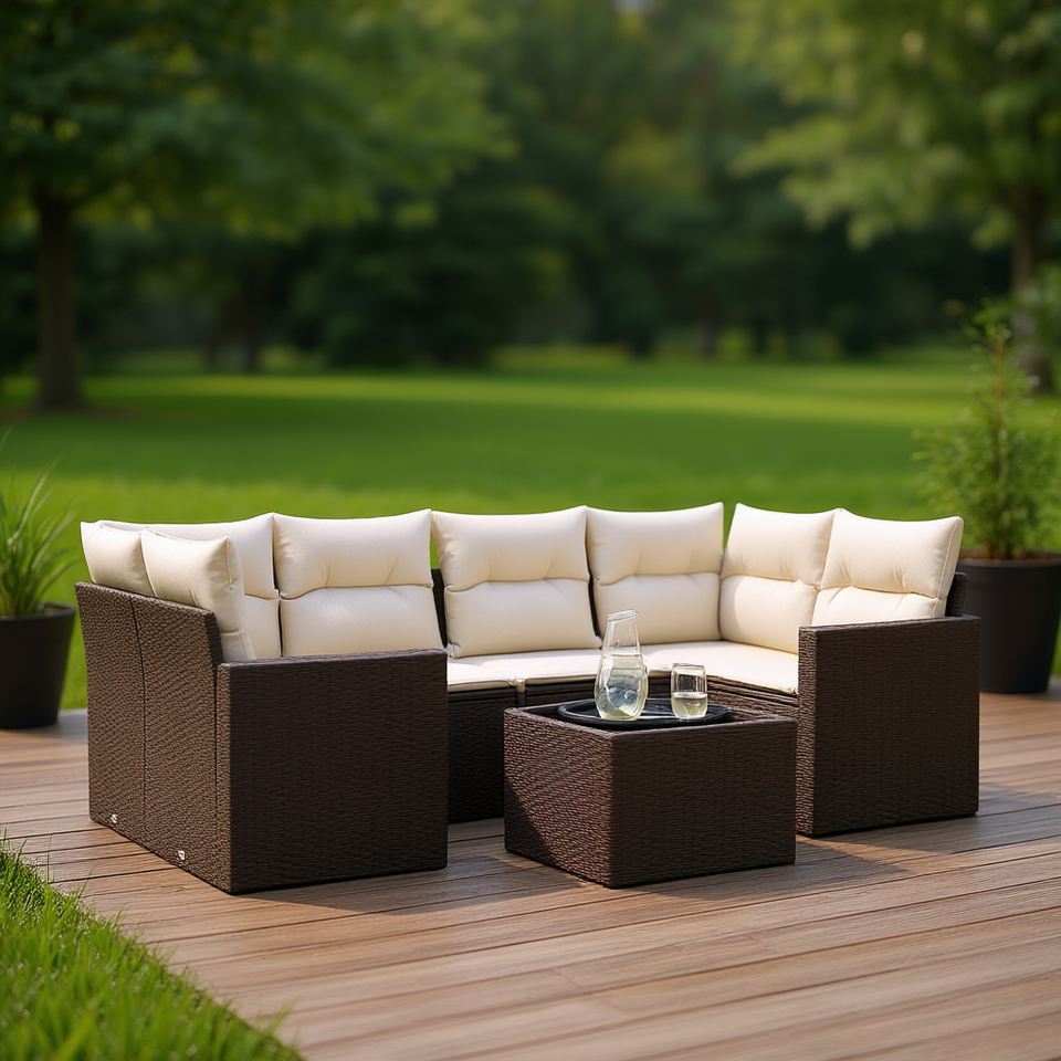 Ensemble de canapés de jardin en rotin PE brun modulaire, mobilier de patio, 7 places, design moderne, utilisation en extérieur