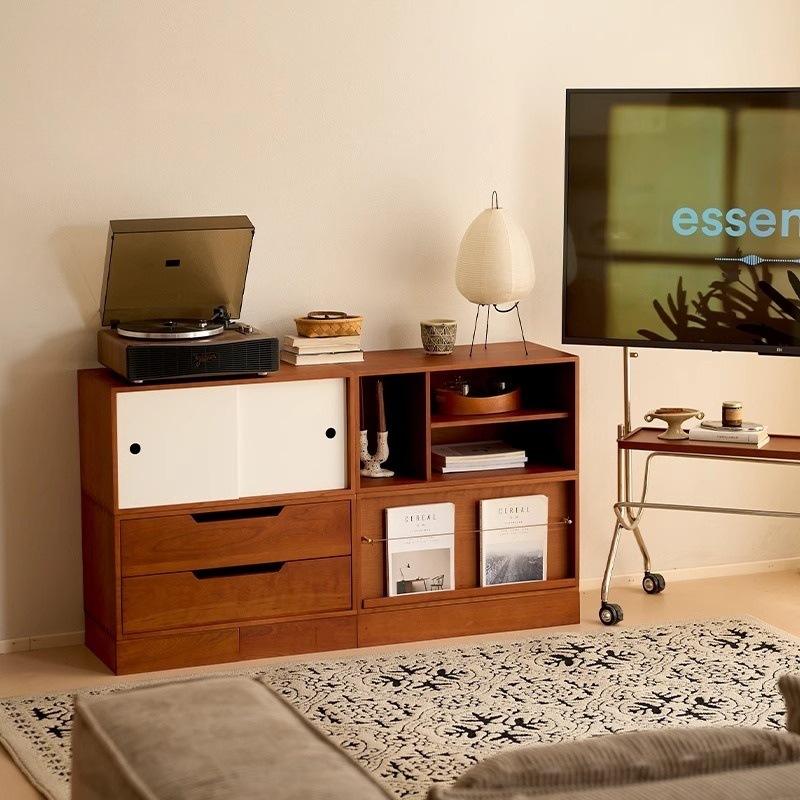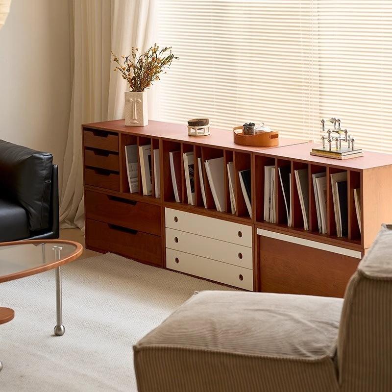Armoire modulaire sur pied, armoire de rangement basse, style vintage, armoire de salon, bois de buis, 5 compartiments, utilisation adulte