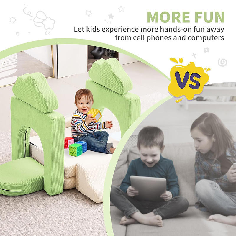 Canapé modulaire pour enfants avec coussins en éponge haute densité pour le jeu et l'assise des enfants, 2 places, construction en tissu