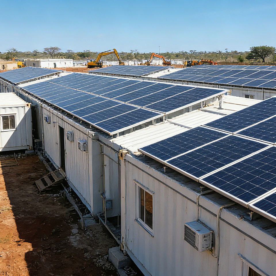 Maison modulaire en conteneurs avec système d'énergie solaire et stockage de batteries pour chantier de construction à grande échelle et camp mobile