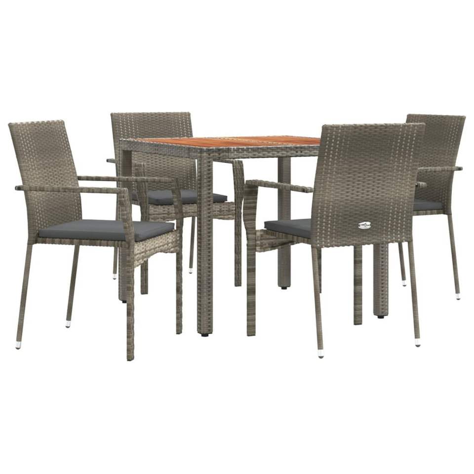 Gray PE Rattan Garden Dining Set 4 Seater Modular Outdoor Furniture Contemporary Design Solid Wood Top Aluminum Frame