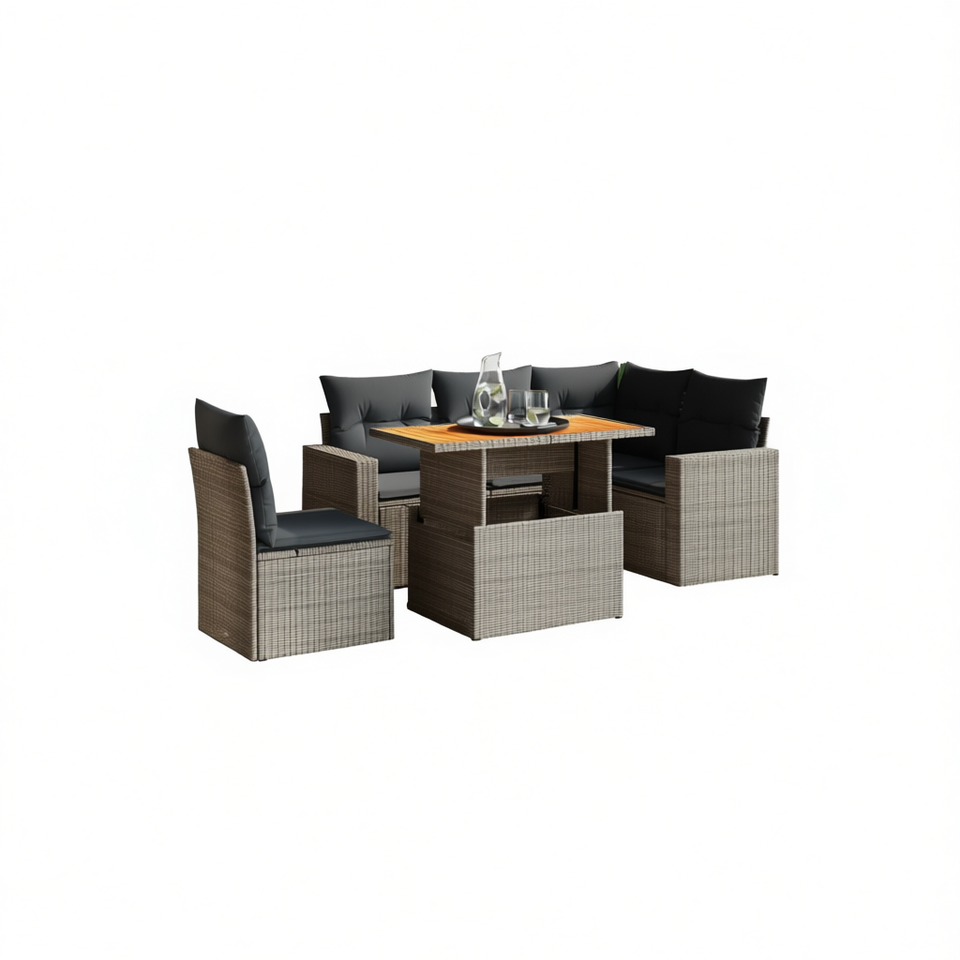 Ensemble de canapés de jardin modulaires en rotin PE gris, mobilier d'extérieur, design haut de gamme, coussins en mousse haute densité, résistant aux UV