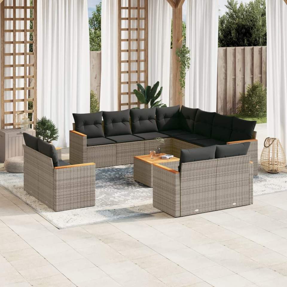 Ensemble de canapés de jardin modulaires en rotin PE gris, design carré, canapés de jardin modulaires élégants
