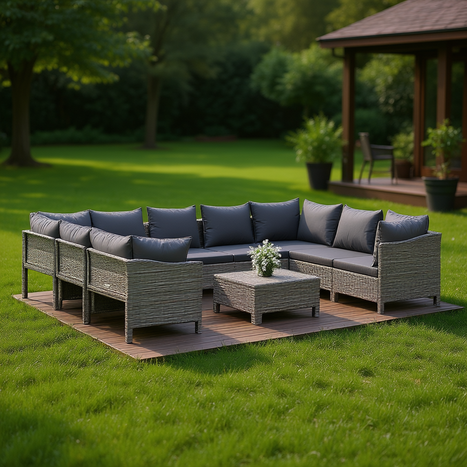 Ensemble de salon de jardin en rotin gris modulaire, 10 pièces, meubles d'extérieur résistants aux intempéries, design contemporain