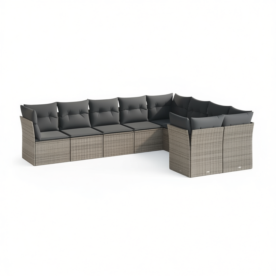 Ensemble de canapés de jardin en rotin gris modulaire, mobilier d'extérieur, 6 places, design haut de gamme