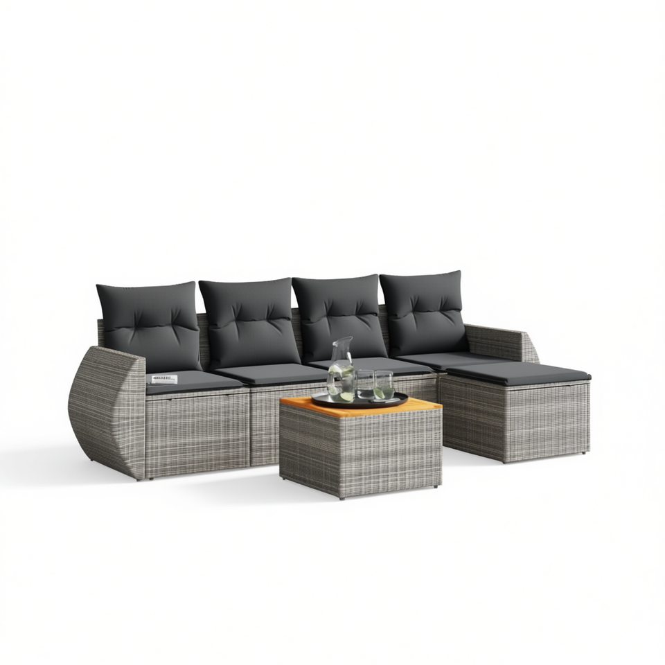 Ensemble de canapés de jardin modulaires en rotin gris, meubles d'extérieur confortables avec coussins en mousse haute densité, design contemporain