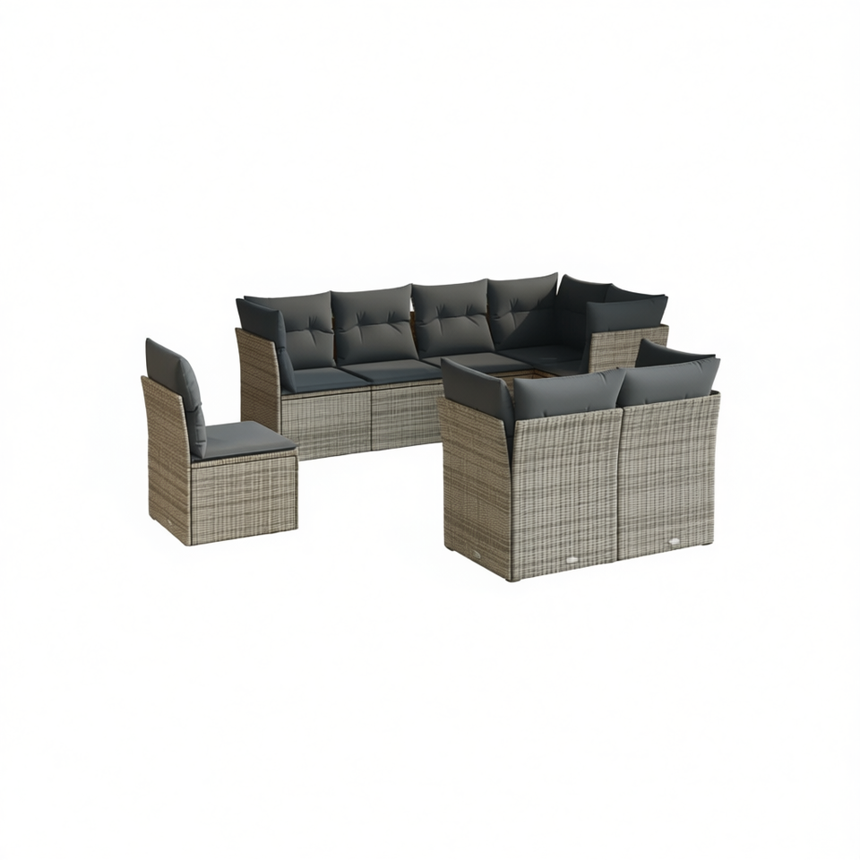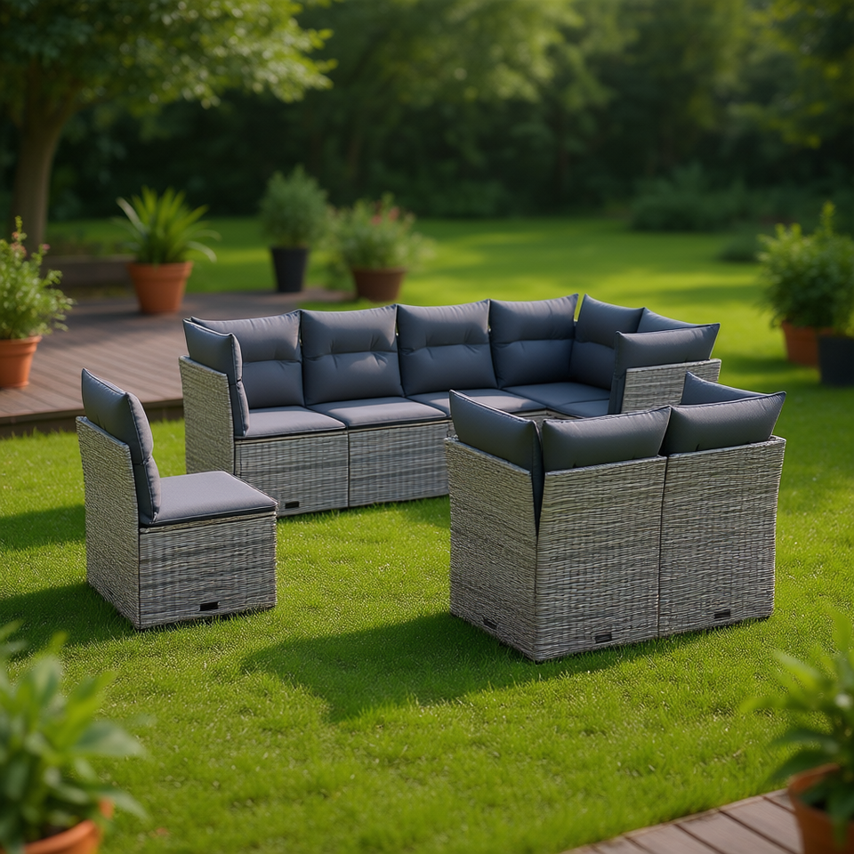 Ensemble de canapés de jardin modulaires en polyrotin gris 6 places, mobilier d'extérieur au design contemporain