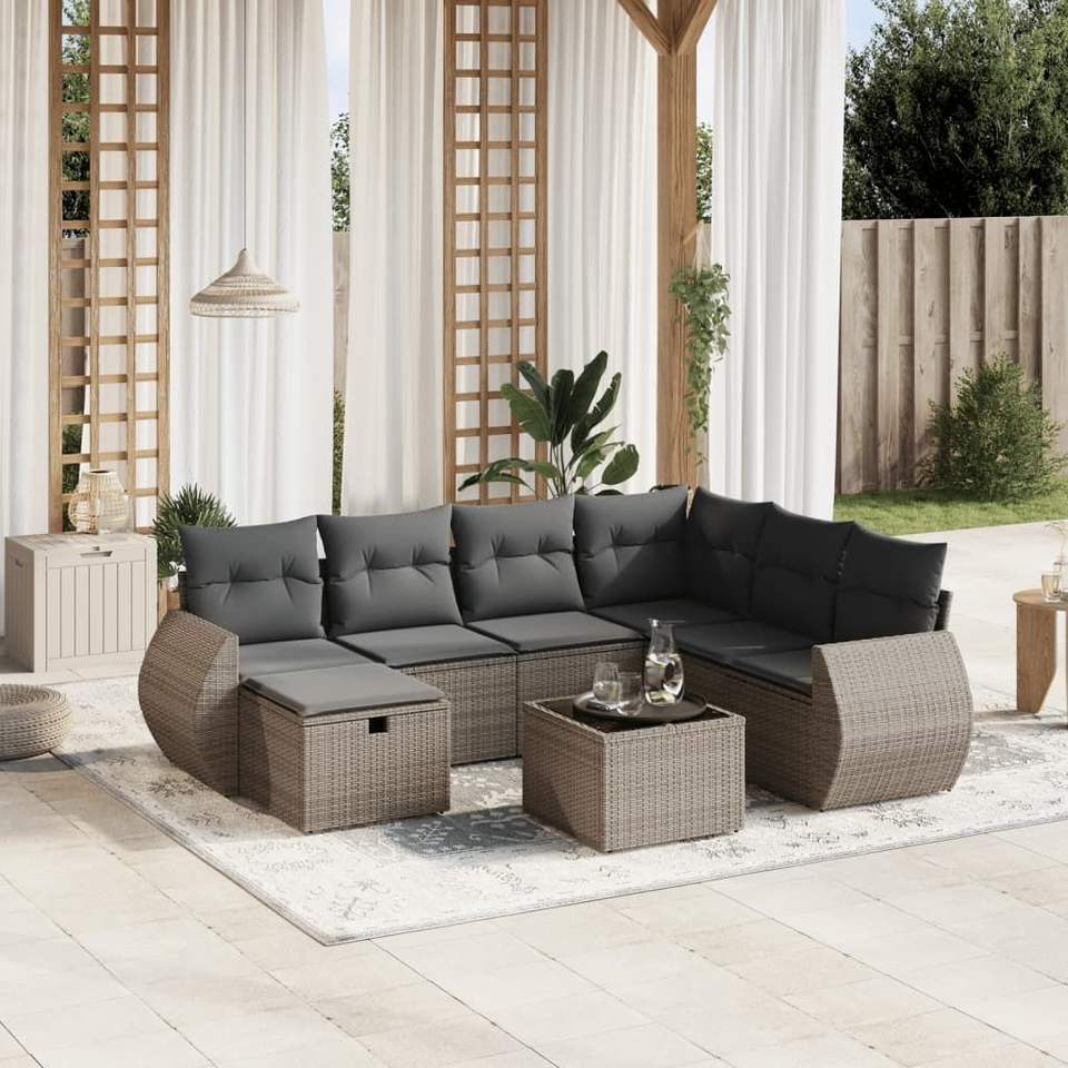 Ensemble de canapés de jardin modulaires en polyrotin gris 6 places, collection de meubles d'extérieur, design haut de gamme