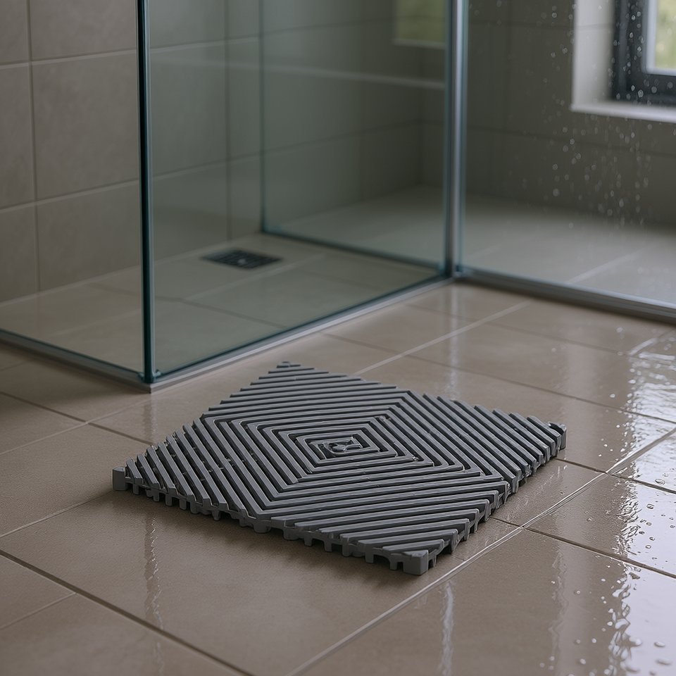 Tapis de drainage modulaire emboîtable 12x12 pouces gris clair antidérapant pour sol de douche, salle de bain, garage, en matériau PP